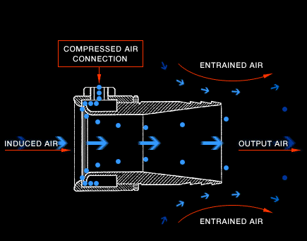 Een nieuw soort venturimondstuk, dat het persluchtpotentiaal gebruikt om extra lucht aan te zuigen, verhoogt de luchtvolumestroom hierdoor met maximaal het 35-voudige zonder ook maar één m³ meer perslucht en derhalve energie te verbruiken. Deze technologie wordt bijvoorbeeld toegepast bij het koelen, drogen, transporteren en reinigen. Aangezien er geen bewegende delen zijn, zijn deze mondstukken onderhouds- en storingsvrij en hebben ze zich binnen korte tijd terugverdiend.